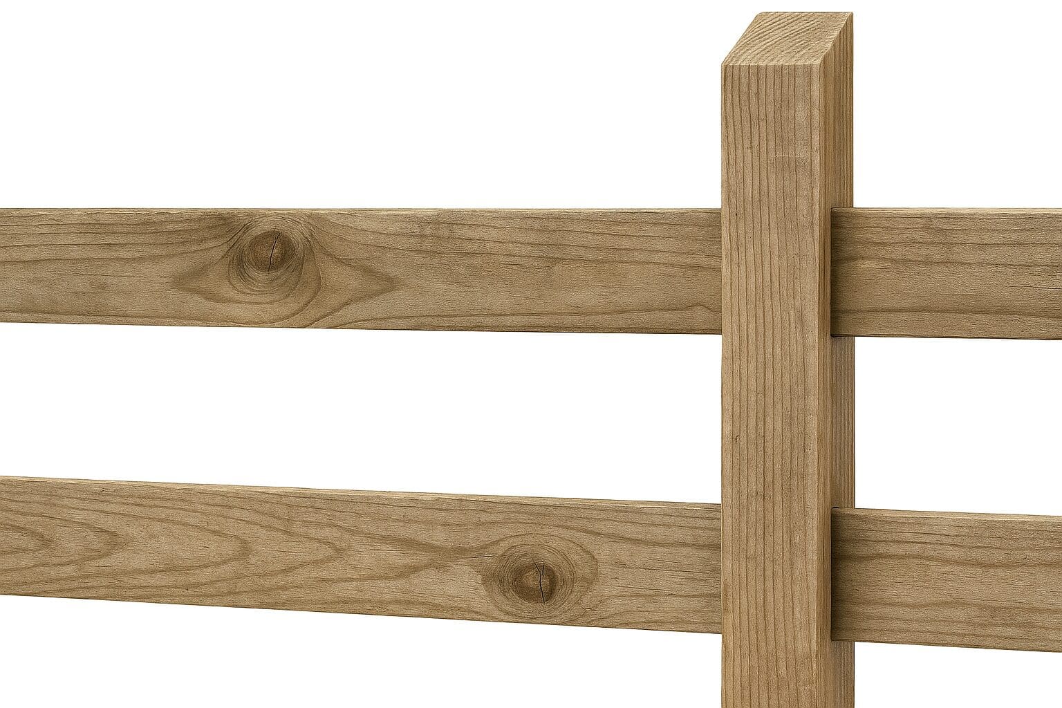 Gemaakt uit drukgeïmpregneerd dennenhout en voorzien van doorlopende liggers en afgeschuinde palenkoppen, is dit de ideale afsluiting voor paardenweides, boerderijen, tuinen of landelijke erven.